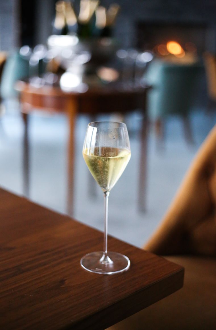 - Glass of Champagne and canapés